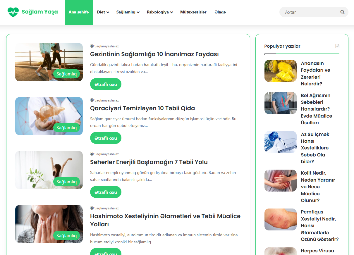 Aylıq 100 000 orqanik istifadəçisi olan saglamyasha.az saytının qurucusuyam